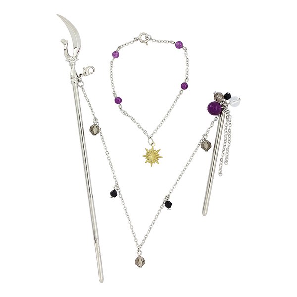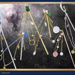 - Ожерелье "Stallion Reve Necklace": сделано в форме чаши, через которую Чибиуса беседовала с Гелиосом в 4 сезоне. Кристальный шарик на верхушке имеет растительный орнамент, имитирующий "Лес мечты" - жильё Пегаса - и фигурку его самого; является съёмным и его можно носить отдельно, в качестве подвески-кристалла. Цена - 30000 йен.