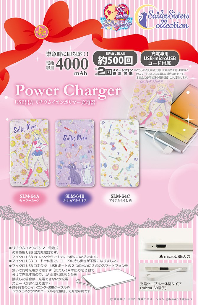Третьими товарами от «Sailor Sisters Collection», стали портативные зарядные аккумуляторы. Как и чехлы, они имеют мягкую, пастельную расцветку. Всего в линейке представлены 3 модели аккумуляторов: