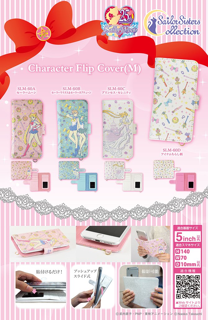 Анонсированные вторыми, чехлы для смартфона из серии «Pretty Soldier Sailor Moon Universal Notebook Type Smartphone Cover» имеют мягкую, пастельную расцветку и перламутровый блеск. Всего в линейке представлены 4 нижеследующие модели: