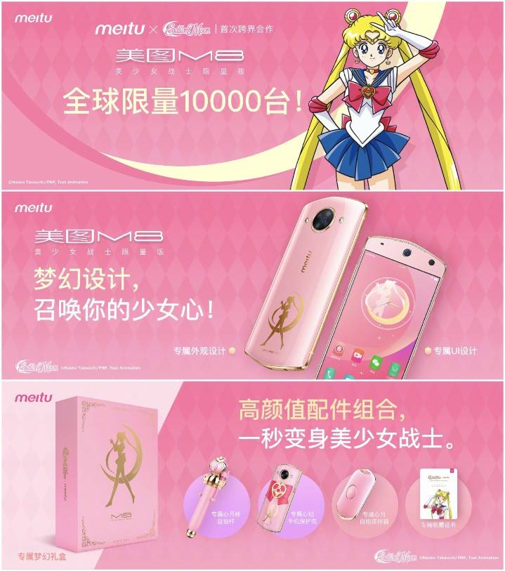 И в тот же день китайская компания «Meitu», специализирующаяся на выпуске смартфонов для селфи (главным в них является фронтальная камера и то, какие селфи она способна делать), анонсировала новую модель смартфона в линейке «М» – М8 в 2 специальных версиях: Hello Kitty и Sailor Moon. Характеристики смартфона выглядят следующим образом: