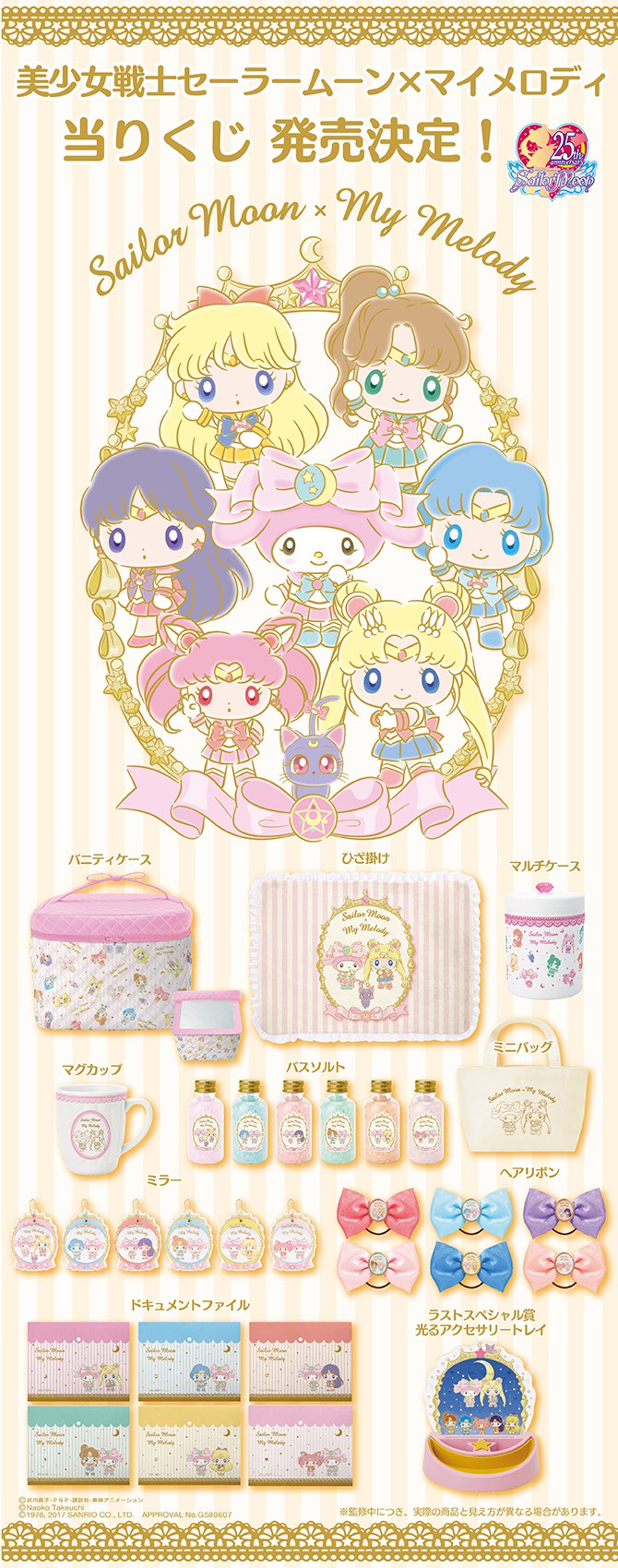 Первой была анонсирована беспроигрышная лотерея, в которой любой участник выигрывает какой-либо приз. Дизайны вещиц для данной лотереи являются оригинальными и «кавайными» (милыми); они предназначены для использования, как дома, так и за его пределами. Тема товаров – MyMelodyи Сейлор воины. Старт лотереи назначен на 22 сентября. Цена билета – 700 йен. Список призов выглядит следующим образом: