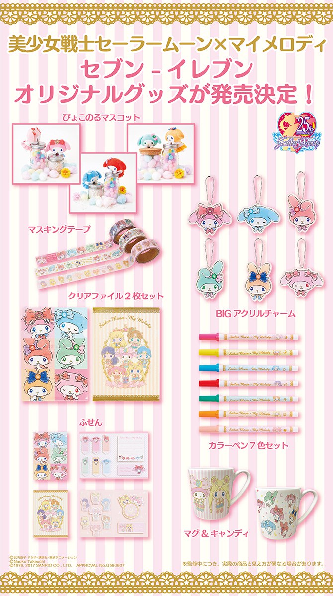 Немногим позднее на официальном сайте была анонсирована вторая часть сотрудничества – тематические товары для магазинов сети «7eleven». В линейке будет 2 вида товаров: ММ + сейлор-сенши и ММ в качестве сенши «внутренних планет». Как и в случае с лотереей, старт продаж назначен на сентябрь. Список продукции выглядит следующим образом: