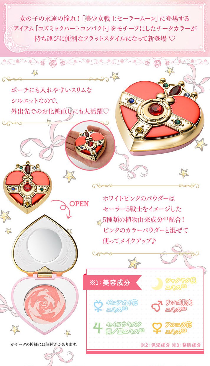 30 мая компания «Creer Beaute» анонсировала новое косметическое средство в СМ-стиле в линейке «Miracle Romance». Им стала очередная пудра - «Cosmic Heart Cheek Flat Style» - базирующаяся на броши Космического Сердца СМ из 3 сезона. Брошка окрашена в светло-красный и золотой цвета, инкрустирована стразами и закрывается на магниты. Пудреница-брошка изготовлена в плоском варианте и имеет небольшие размеры – 77 мм. в диаметре и 23 мм. в толщину, которые позволяют носить её с собой в сумке.