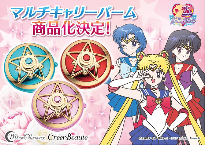 Сегодня же, 1 июня, «Creer Beaute» анонсировали ещё 2 косметических средства. Первыми стали бальзамы в коробочках-коммуникаторах иннеров. В первую партию вошли 3 вида: Мун, Меркурий и Марс. Каждый бальзам имеет соответствующие той или иной "внутренней" воительнице цвет и увлажняющий ингредиент. Бальзам можно использовать как для губ, так и для всего тела.