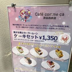 - Сейлор Марс: пирожное с кисло-сладкой клубникой и американской вишней. Дополнено малиновым муссом, ягодным соусом, взбитыми сливками, печеньями в форме звёздочек с символом Марса и сахарными бусинами.