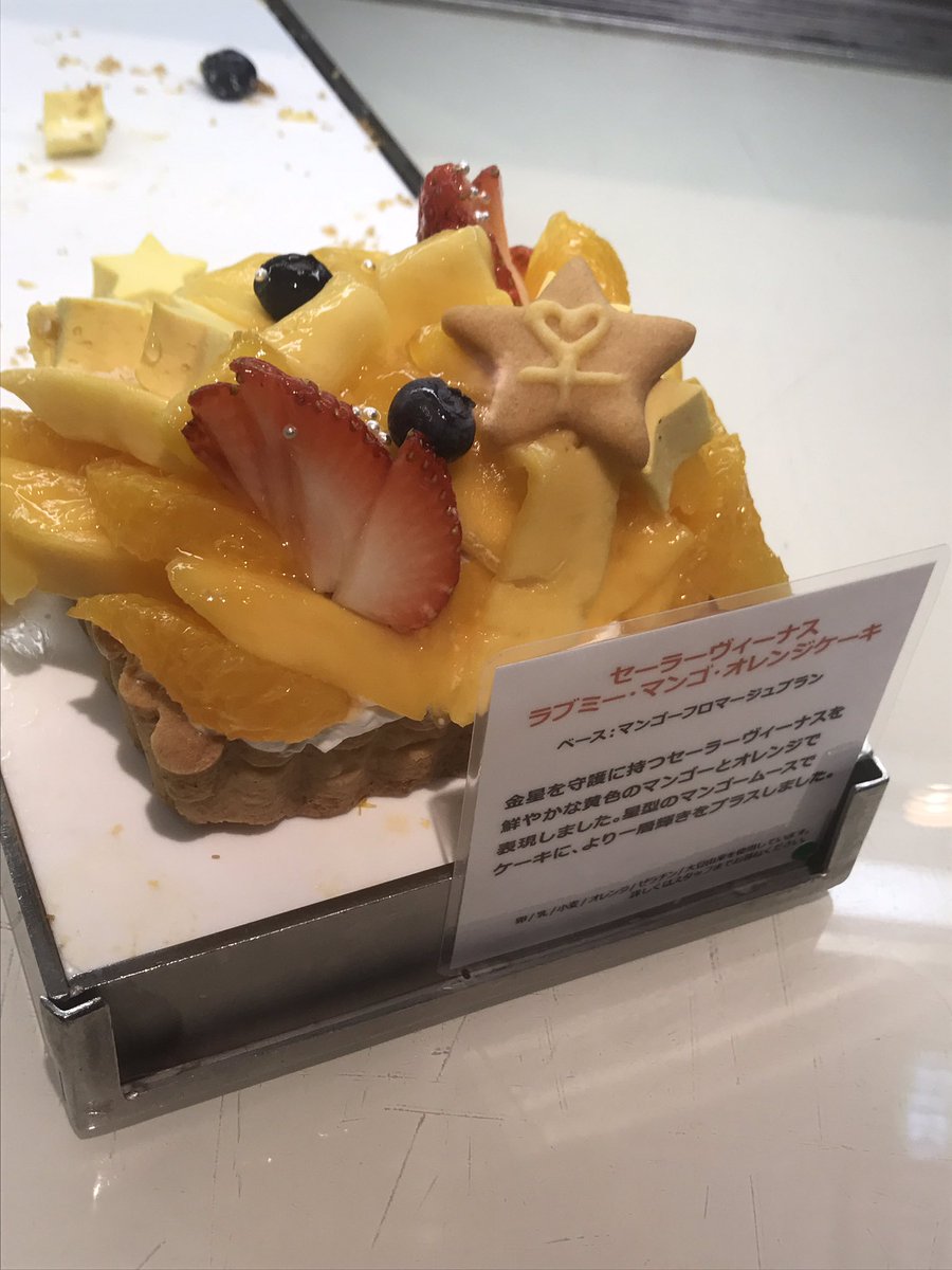 - Сейлор Венера: пирожное с манго, апельсинами и клубникой. Дополнено черникой, муссом в форме звёздочек печеньями в форме звёздочек с символом Венеры и сахарными бусинами