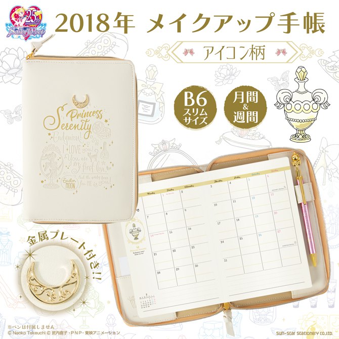 20 июля «SunStar Stationery» анонсировали 2 новых ежедневника на молнии на 2018 г., под названием «Bishoujo Senshi Sailor Moon 2018 Makeup notebook». В линейке будет представлено 2 модели – «Sailor Moon pattern» в аниме-стиле и «Icon pattern» в стиле «Серенити».