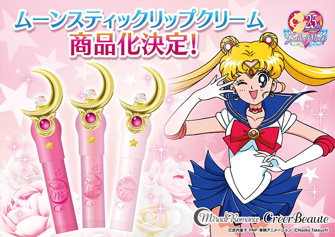 26 июня, «CreerBeaute», в косметической линейке «Miracle Romance», анонсировали новые средства – бальзамы для губ под названием «Miracle Romance Moonstick Lip Cream». Всего в линейке будет 3 варианта – клубника, роза и персик, оттенки – обычный, бесцветный бальзам, и 2 цветных. Упаковка будет выполнена в форме Лунной Палочки с Серебряным Кристаллом из 1 сезона аниме: как и бальзам, она будет иметь 3 цветных варианта – бледно-розовый, розовый и ярко-розовый. Предназначен для ежедневного использования.