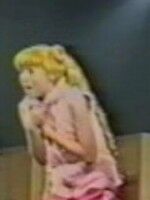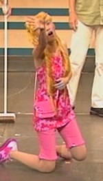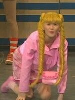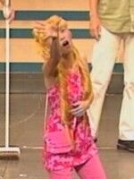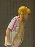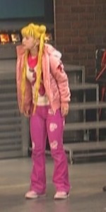 Но явившись на кастинг, она предстает перед нами в розовом топике, такой же юбке и носках. Майка и кроссовки девушки были белыми. Номер «1» на майке тоже был розовым. -