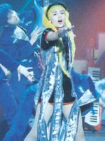 Но когда она сама выступает на фестивале вместе с «Тремя Огнями», она переодевается вот в такой костюм. -