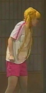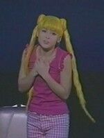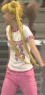 Летом 2000 года (мюзикл "Kassen/Transylvaniya no Mori") Усаги гостила в храме у Рэй. Одета она была в белую майку и розовые шортики. -