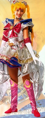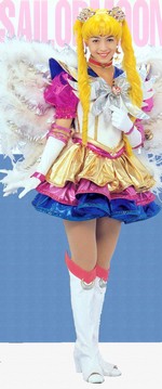 Вечная Сейлор Мун...Она появляется в мюзиклах тогда, когда Усаги проявляет максимум своей силы, будь то битва с Галаксией или с Черной Луной. Выглядит так же, как и в анимэ (за искл. цвета нижней юбки). Даже диадемы у Сейлор Мун нет, вместо неё на лбу красуется полумесяц.