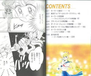 На обороте суперобложки синопсис данного тома: «Очень энергичная юная Айно Минако-тян становится прекрасной воительницей в сейлор-фуку, Сейлор Ви, и сражается вместе с белым котом Артемисом! Вас наверняка увлечет эта история! Приквел серии о прекрасных воительницах в сейлор-фуку, наконец-то, появился».