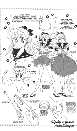 Страницы с записями Наоко были удалены, за исключением одной, где дается описание Минако и характеристика ее волшебных предметов. Данная страница балы помещена в конец первого тома манги.