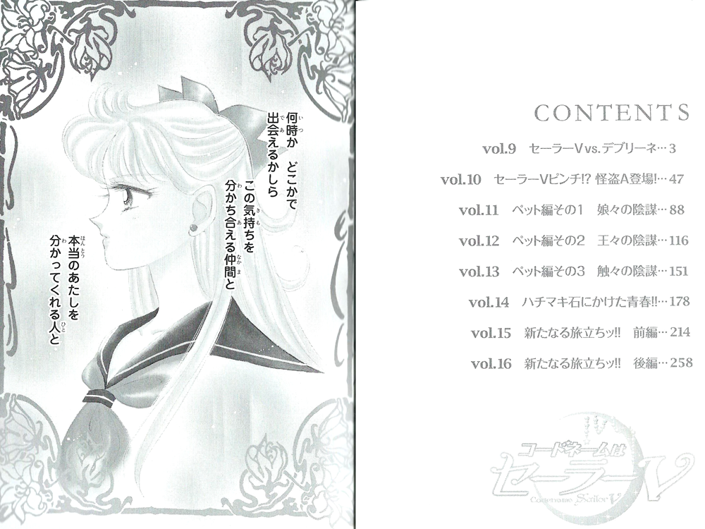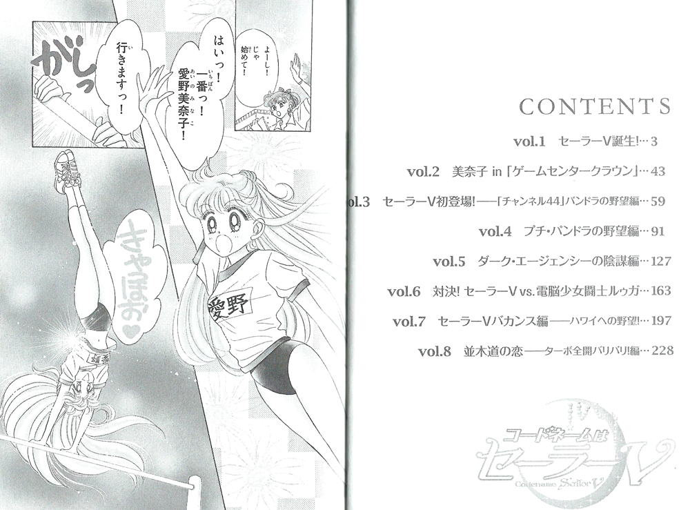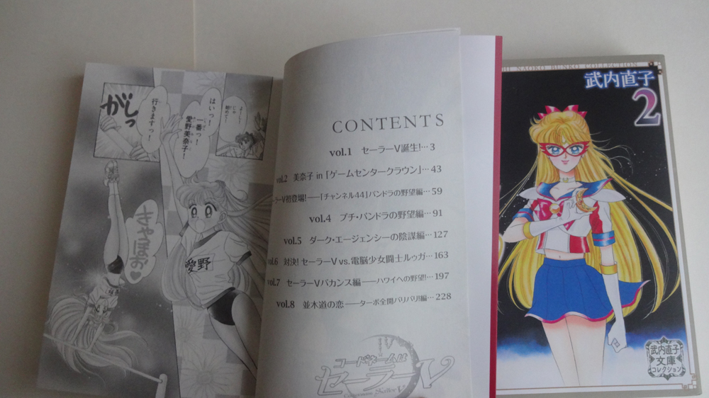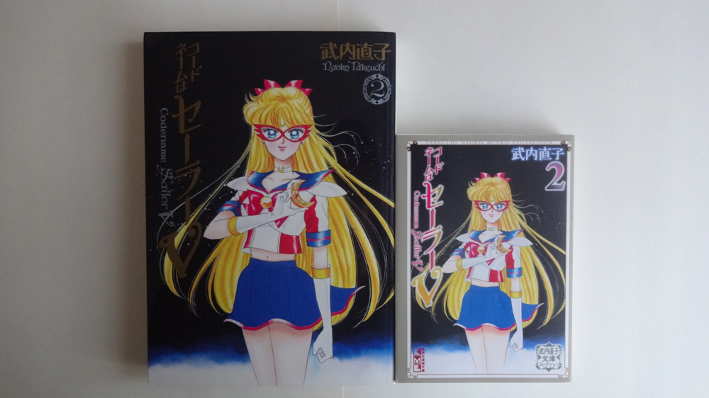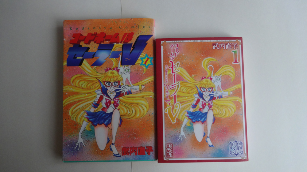 …или просто бунко. По сути, является уменьшенной и удешевленной карманной версией кандзэнбанов. Эта книга в суперобложке с картинкой, как у кандзэнбанов, размером всего 10,5 на 14,5 см. «Родная» обложка - белая, с надписью «Кодовое имя: Сейлор Ви» на японском и английском языках. Первые страницы – черно-белые картинки с обложек синсёбанов. Само содержание каждой из двух книг – это тот же кандзэнбан, но только уменьшенный и нераскрашенный. Страницы выбеленные, так что читать и приятно, и удобно.