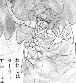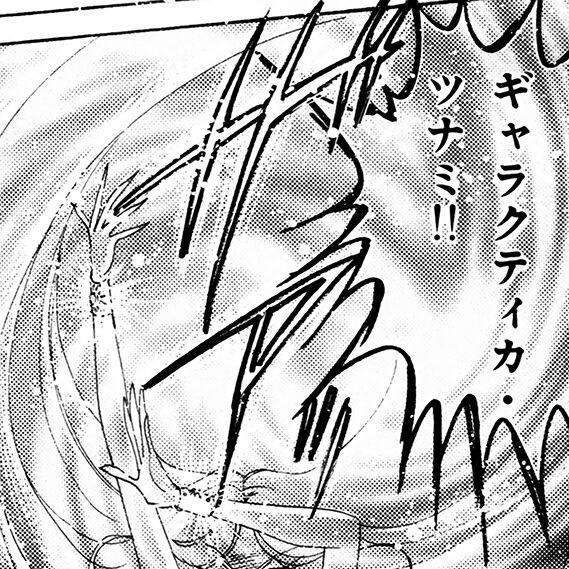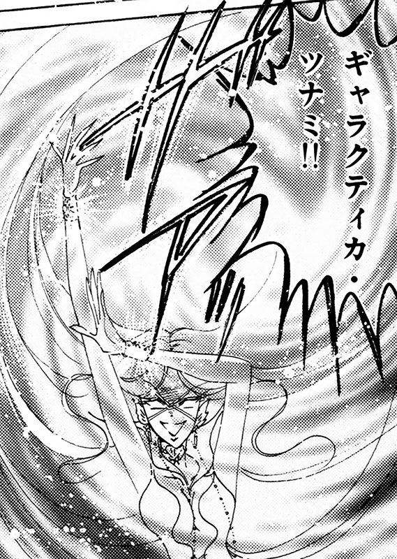 В манге, выкрикнув "Галактический Цунами", Сейлор Алюминиевая Сирена опутывает и удушает жертву своими длинными волосами.