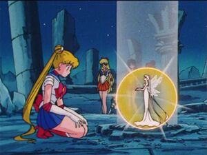 Сейлор Венера нашла темный портал. Но вот незадача: его охраняет Кунцит, который отправляет Сейлор Воительниц, как ему кажется, в многомерный хаос. Вместо этого девочки оказываются на Луне, где их встречает дух Королевы Серенити. Луна и Артемис на Луне не оказываются, а расследуют местонахождение Темного Королевства. И им это удается.