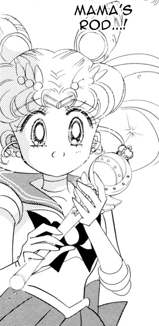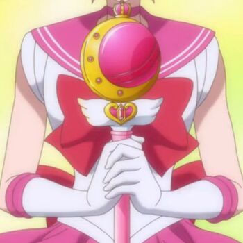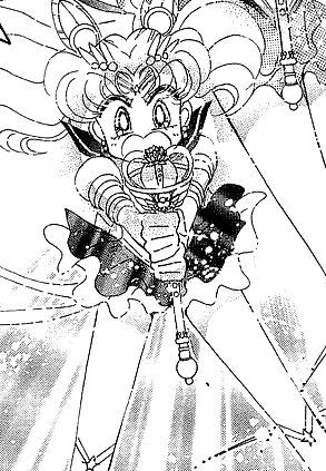 Полное описание: В аниме появление этого Жезла не показано. Сейлор Чиби Мун появилась в разгар битвы Сейлор Мун и Сейлор Марс с демоном. Особой мощностью этот Жезл не отличается, да и срабатывает атака не каждый раз.