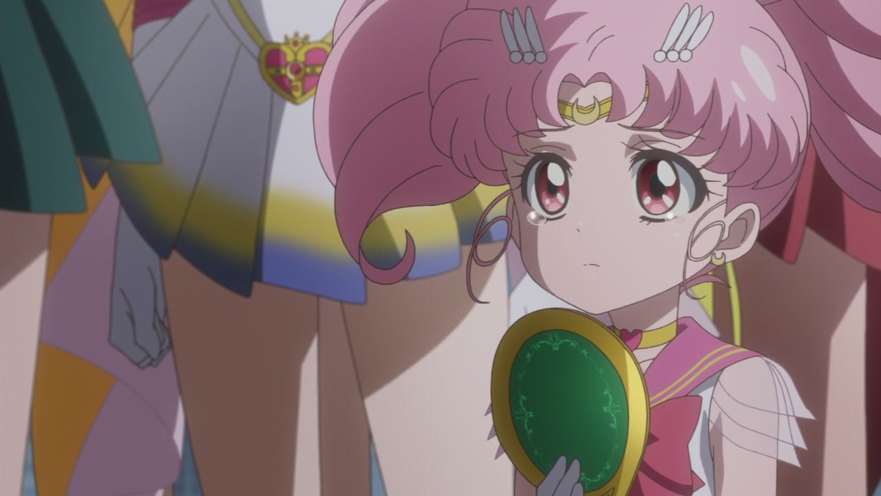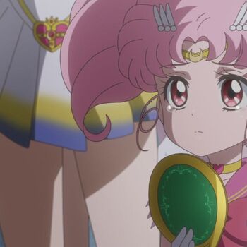 Чиби Уса решает вернуться в будущее, поскольку считает, что на данный момент её миссия стать опытной Воительницей в матроске закончена. Однако Ключ Пространства и Времени не открывает врата в мир 30-го столетия. Чиби Уса была уверена, что Пегасу нужна её помощь. Из цирка неожиданно сбежал тигр, который направился в направлении торгового центра, где было много людей. Усаги и Чиби Уса попытались стать Воительницами, но у них ничего не вышло. Перед каждой из них появился Святой Грааль. Наполненные новой силой, броши Усаги и Чиби Усы изменились на новые. Девочки перевоплотились в Супер Сейлор Мун и Супер Сейлор Чиби Мун. Но перед Воительницами встала надобность в получении новых предметов для борьбы с лемурами. Пегас подарил Чиби Мун Кристальный Карильон, чтобы девочка могла призвать его в любой момент. Чиби Мун попросила у Пегаса новое оружие. Два их калейдоскопа, которые подарил им Мамору, превратились в Волшебные Лунные Калейдоскопы.