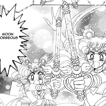 В аниме появление Калейдоскопа Чиби Мун не раскрыто. Во время решающей битвы с королевой Бадьяной оба магических предмета появляются в руках Супер Сейлор Мун и Супер Сейлор Чиби Мун. Двойной атакой «Moon Gorgeous Meditation» они уничтожили врага.