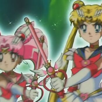 Зло вот-вот захватит планету. Сейлор Мун призвала Святой Грааль и Воительницы наполнили его своей силой. Сейлор Чиби Мун сказала, что тоже хочет иметь силы для защиты планеты. Она пообещала себе стать такой же сильной, как Сейлор Мун. Девочка отдала свои силы, чтобы наполнить чашу Святого Грааля для перевоплощения Усаги в Супер Сейлор Мун. Тогда перед ней появилась вторая чаша Святого Грааля, только меньшего размера. Обе лунные Воительницы получили супер форму.