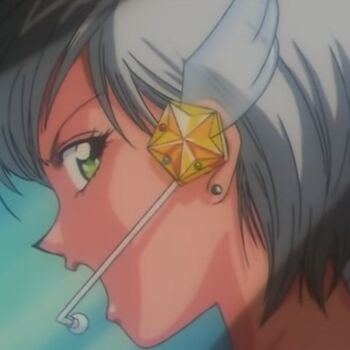 Полное описание: В манге микрофон появлялся во время перевоплощения и крепился на серьгу в форме звезды и заканчивался такой же звездой ближе ко рту. В отличие от аниме, микрофоны после трансформации не исчезали.