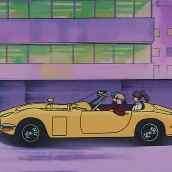 Этот дорогой и раритетный автомобиль зовётся Toyota 2000GT. Причём Харука водит машину без верха, а таких машин было изготовлено в реальности всего две штуки, и предназначались они для съёмок в фильме о приключениях Агента 007 Джеймса Бонда в Японии «Живёшь только дважды» («You Only Live Twice») 1967 года выпуска с Шоном Коннери в главной роли. Машину водила его японская подруга. Как к Харуке попал такой эксклюзив, остаётся загадкой.