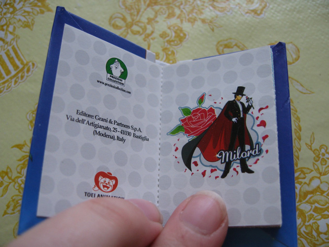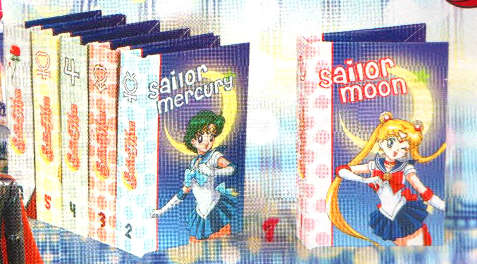На корешке книжки изображены астрономические знаки воительниц, а на книжке Таксидо Камэна – роза. Кстати, Таксидо Камэн, согласно итальянской традиции называется Милорд, а Усаги – Банни.