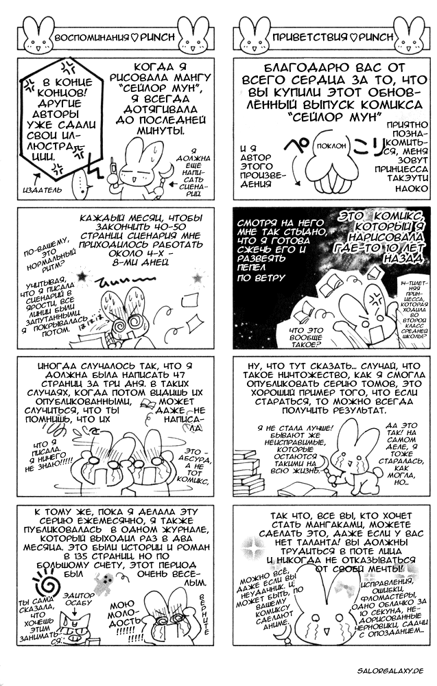 Punch – пародийная манга от Наоко, где та рассказывает о своей работе над «Сейлор Мун». Манга находилась в некоторых томах переиздания. Данный перевод был выполнен на русский Unica с итальянской версии манги. Читать справа налево.