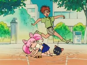 Усаги пулей прибежала в него прямо из дома Хотару, чтобы получить автограф известного писателя, но сначала ей пришлось спасти его от другой «фанатки» - Мимет, которой понадобилось Чистое Сердце таланта.