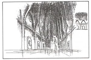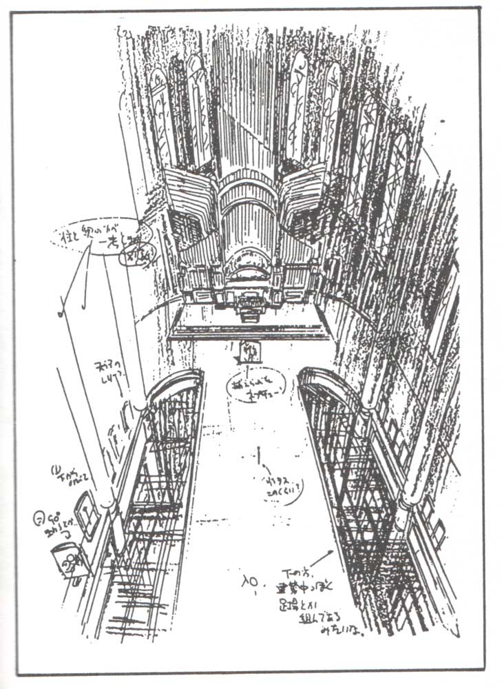 Именно в это не самое типичное для Японии здание, которое то ли еще не достроено, то ли просто на реставрации, Эдвиал заманила Сейлор Уран и Нептун, чтобы уничтожить и захватить хранящиеся в их сердцах талисманы. В этом соборе есть красивые витражи, странные панно с амурами и орган.