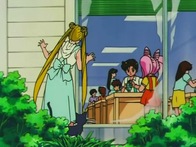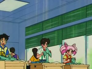 Именно туда заявилась с очередным даймоном Эдвиал, чтобы украсть Кристалл Чистого Сердца одного из учеников - Масанори Цузуки. Однако она не учла, что это же заведение посещают сразу две Воительницы - Сейлор Нептун и Сейлор Чиби Мун. А где они - там и их напарницы - Уран и Сейлор Мун.