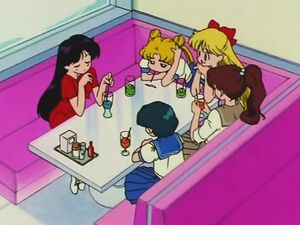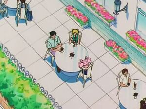 В это кафе забежали Минако и Усаги, преследуя Харуку.