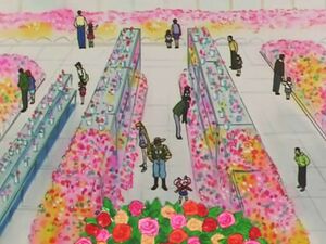 Очень большая и полна красивых цветов. Однако увы, ей досталось и из-за грозы, и из-за того, что Мимет понадобился кристалл чистого сердца одного из работников данной оранжереи - Ёсики Куребаяси.