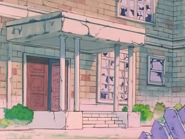 Огромный, немного зловещий особняк. Говорит о том, что доктор Томоэ успешный и обеспеченный человек. Нам показывают гостиную, где Чиби Уса и Усаги дожидаются Хотару, и комнату самой Хотару, всю наполненную светильниками.