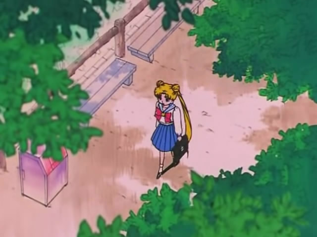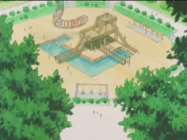 Парк находится недалеко от больницы, куда был госпитализирован профессор Томоэ. В парке произошла очень радостная встреча. Чиби Уса встретила свою лучшую подругу - Хотару, правда в облике младенца, но они явно узнали друг друга. Хотару так потянулась к Чиби Усе. Получилась очень трогательная сцена.