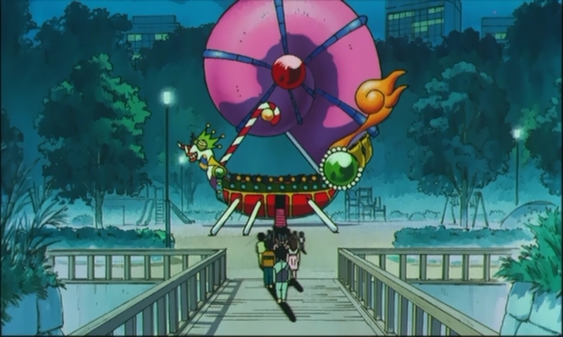 А ночью, ровно в три часа, Усаги видит, как Малышка во сне встает и выходит из дома. И она не одна такая! Целая толпа детей и в Японии следует за флейтистом Пурпураном. Сейлоры даже пытаются его остановить, однако попадают под атаку Бон-Бон Младенцев и иллюзий Пурпурана (забавно смотреть на то, как воины приняли лазелки на детской площадке за сладости...). Особенно не везет в сражении Токседо Маску. Также и Перуру, новый друг Чиби Усаги, очевидно предавший "похитителей детей" и выступивший против своих бывших коллег, не может предотвратить того, что Пурпуран с детьми и Чиби Усаги исчезает. На корабле Перуру Сейлор Воительницы начинают преследование в космосе, направляясь к Марципановому замку Бадианы. К ним присоединяются и три внешних воительницы: Уран, Нептун и Плутон (и не спрашивайте меня, каким образом они там оказались!)