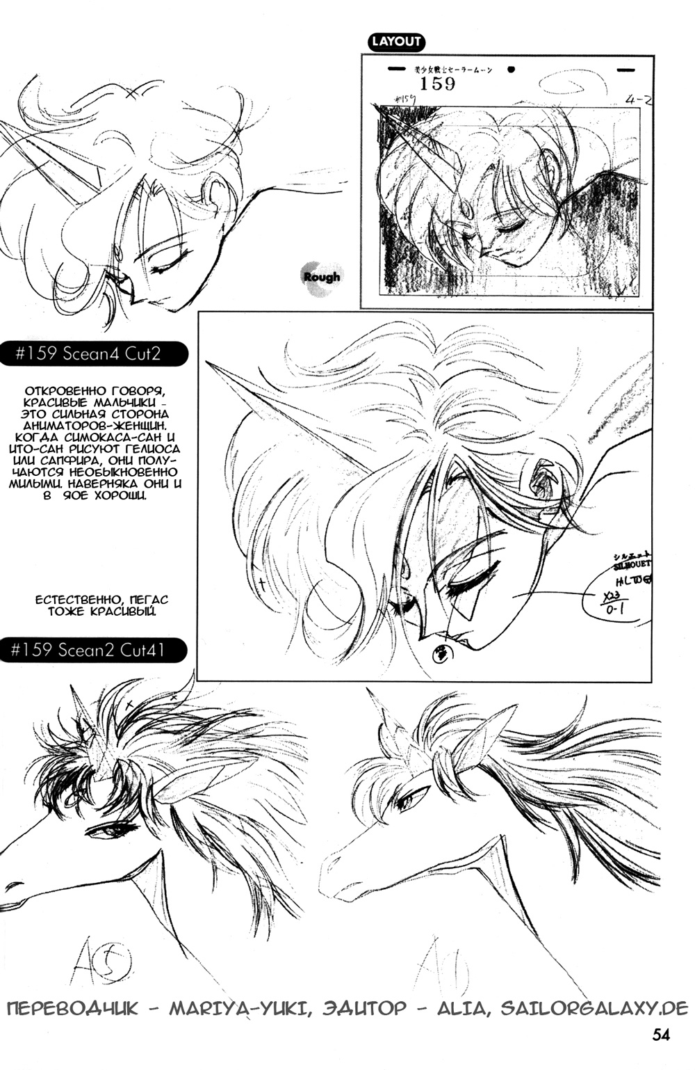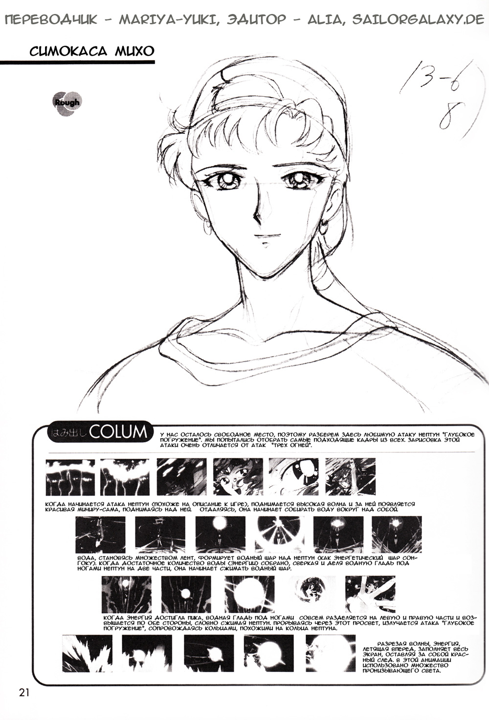 В книге также описываются сильные и слабые стороны каждого аниматора. Указывается, какой персонаж лучше получается у какого художника, даже дается информация о том, чьим персонажем является тот или иной герой сериала. Так Мизуно Ами – персонаж Андо Масахиро, а Томоэ Хотару – Ито Икуко. Рассказывая о том, как женщины-аниматоры отлично справляются с рисованием парней, авторы даже подтрунивают над ними. Так, отмечается, что Ито Икуко и Симокаса Михо настолько здорово рисуют Гелиоса и Сапфира, что, скорее всего, им и в рисовании яоя не было бы равных.