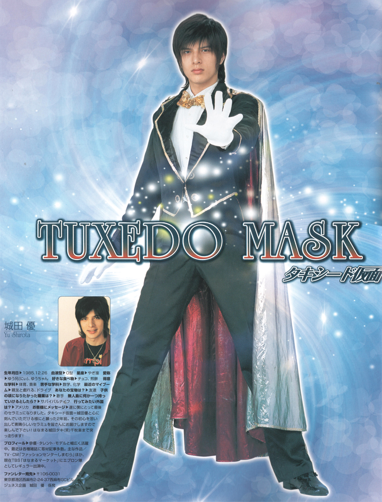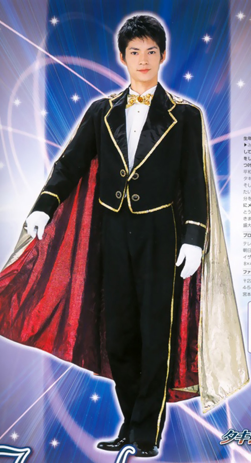 Мотидзуки Юта на втором месте по продолжительности игры в мюзиклах. Он играл в 487 представлениях и дольше всех был на роли Таксидо Камэна.Образ его персонажа - сильный, смелый и расчетливый мужчина, который в любую секунду может обвести врагов, что бы защитить дорогих ему людей. Единственный минус - это то, что сам Мотидзуки Юта был старше свого персонажа. Юта-сан был не только талантливым актером, но и постановщиком трюков для мюзиклов вротой стадии, пока не ушел совсем из проекта SeraMyu.