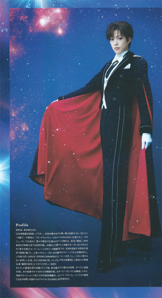 Ямато Юга покинула Такарадзуку, стала простой актрисой. Но это не остановило японскую печатную индустрию, и, вуаля, в феврале 2018 года, аккурат, когда Ямато Юга отыграла Таксидо Камэна в Сейлор-мюзиклах, публикуется ее персональная фотокнига. Такие фотокниги обычно выходят с молоденькими актрисами/певицами/моделями. Ямато Юга же отпраздновала свое сорокалетие. Но эффектной женщиной от этого быть не перестала ^^” Книга поделена на 5 разделов: Путешествие, Театр, Стиль, Житейские будни, Гравюра. Обширное жизнеописание и интервью присутствуют :)