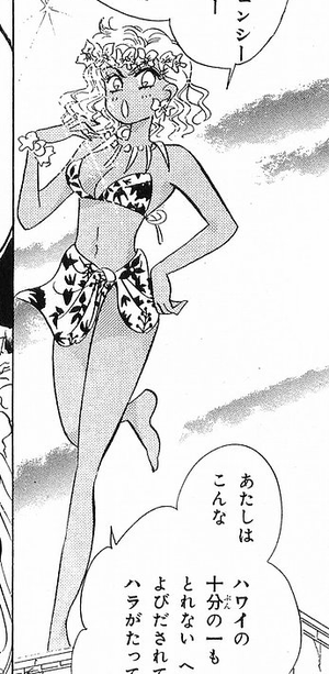 Хибискус получила разрешение на сбор энергии людей, уезжающих заграницу на лето. Она предстает стюардессой на самолете, отправляющемся на Гаваи. Но узнав, что Сейлор Ви отправилась в Грецию, передумав отдыхать на Гаваях, Хибискус резко изменяет курс самолета. Сейлор Ви быстро уничтожает Хибискус.