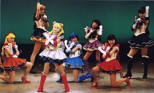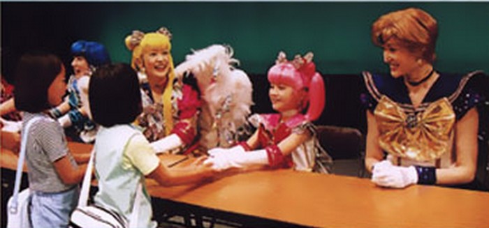 Еще можно добавить, что эти представления включают в себя косплей, правда, обычно косплеерят совсем маленькие девочки. Очень мило на одном Fan Kansha Event’e смотрелись рядом актриса Такаги Нао и маленькая девочка, которая была совсем крохотным Сейлор Уранусом.