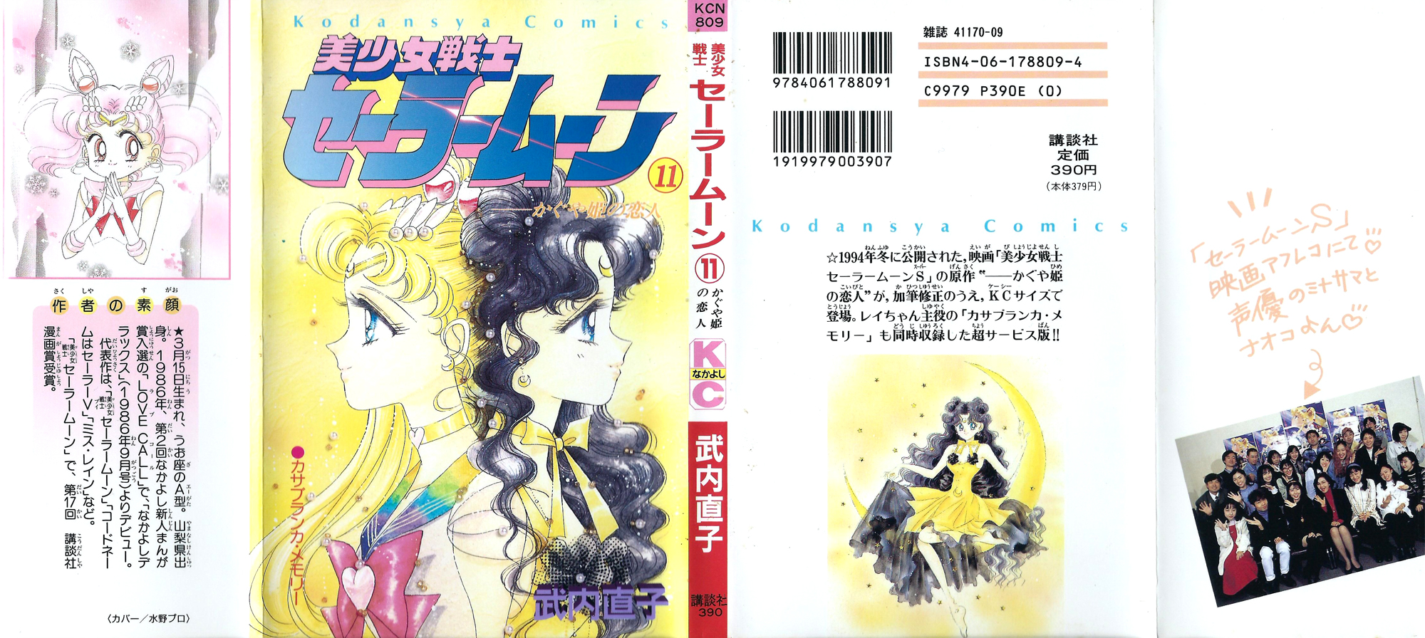 Одиннадцатый том оригинального издания манги «Сейлор Мун» включает в себя две истории: «Возлюбленный принцессы Кагуи» и «Воспоминание о Касабланках». Первая из них занимает большую часть книги, поэтому и на суперобложке мы видим иллюстрацию именно из этой истории. Изображены на обложке Супер Сейлор Мун и Луна в человеческом обличии на желтом фоне. Такэути Наоко также украсила эту картинку бусинами и бисером. На обратной стороне суперобложки маленькая картинка Луны-человека, сидящей на полумесяце, информация о цене и ISBN, а также краткая характеристика тома: «Манга "Возлюбленный принцессы Кагуи", по которой зимой 1994 года вышел фильм "Прекрасная воительница Сейлор Мун С", в отредактированном варианте появилась в КС-формате. Вместе с ней в том же формате - "Воспоминания о Касабланках" с Рэй-тян в главной роли!» На правом клапане суперобложки изображена Сейлор Чиби Мун, а под ней – краткая характеристика автора, Такэути Наоко. На левом клапане – фотография – Наоко и актеры озвучки полнометражного фильма «Сейлор Мун С».