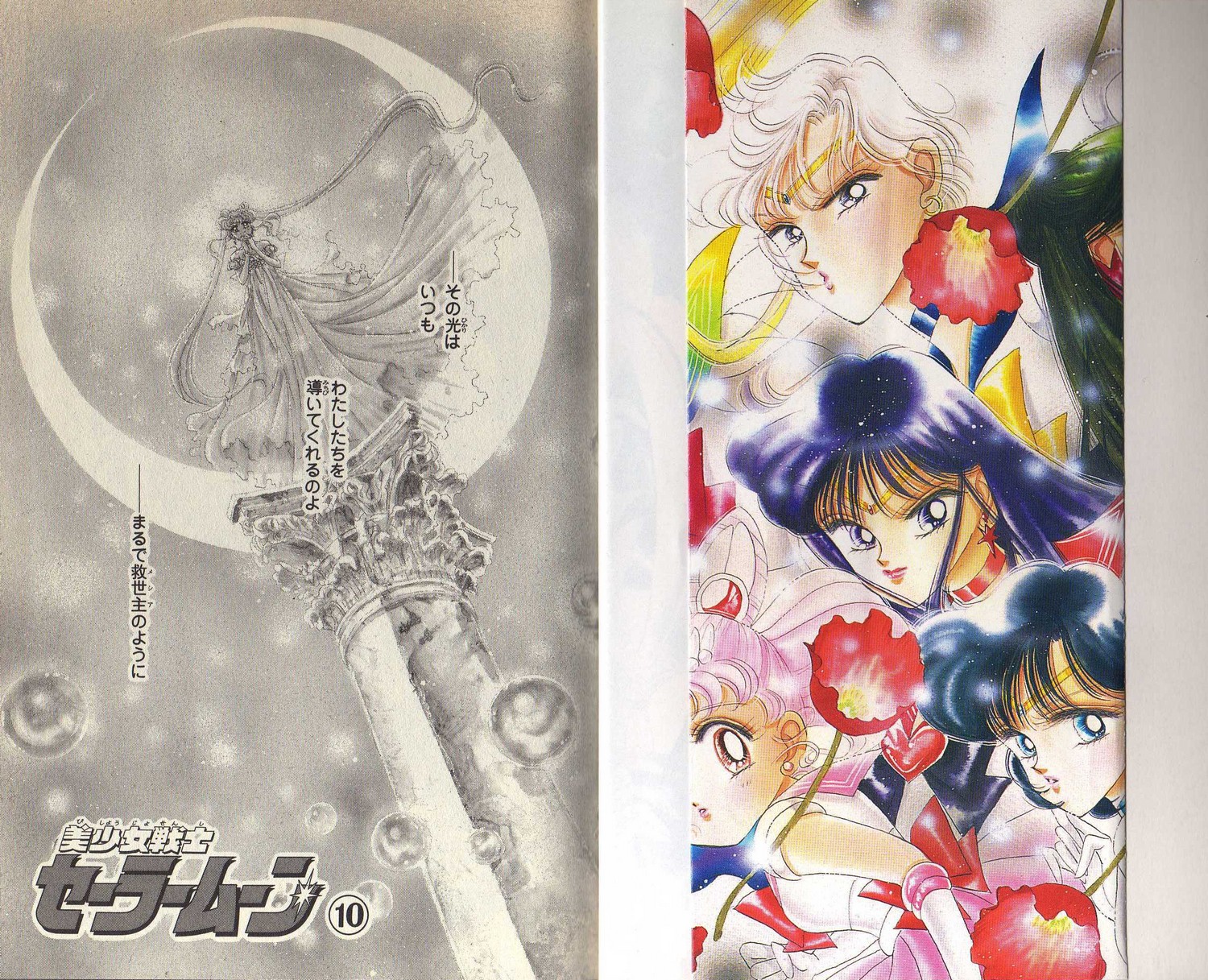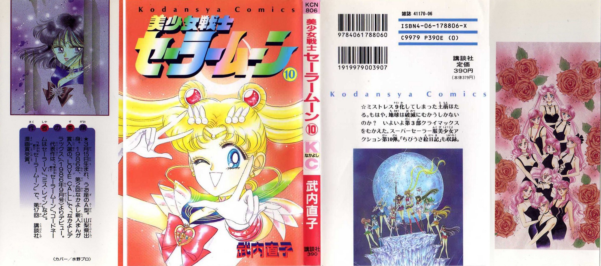 Обратная сторона обложки содержит номера, указание цены, картинку со всеми десятью воительницами Солнечной системы и краткое описание тома: "Владычица 9 подчинила себе Томоэ Хотару. Неужели Земля движется в сторону гибели? Третья часть подходит к своей кульминации, в 10 томе [надвигается] сражение прекрасных девушек в супер сейлор фуку. Кроме того, здесь собраны иллюстрированные дневники Чиби Усы. " . Открыв мангу сзади, мы увидим картинку с десятью девочками на фоне роз.