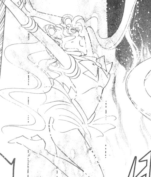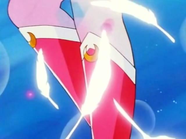1. В 83 серии будучи похищена принцем Алмазом, Усаги пытается перевоплотиться, чтобы противостоять злодею. Но комната, в которой она поневоле оказалась, была заполнена чарами Зловещего Черного кристалла, поглощавшего любой другой вид энергии. Перевоплощение не удалось.
