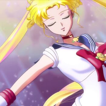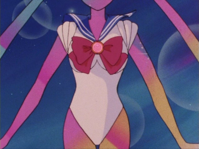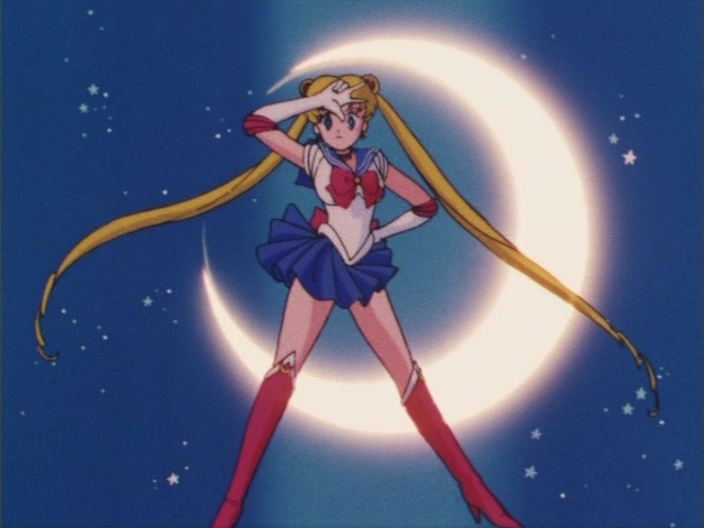 Самое первое перевоплощение Усаги в Сейлор Мун. Впервые показано в 1 серии первого сезона аниме, в первом акте манги и в первом акте Живого шоу. В аниме полное перевоплощение длится около 30 секунд. Интересная особенность: для того чтобы превратиться, Усаги не приходится брать в руки брошь, как во втором сезоне, она прикреплена к ее костюму.