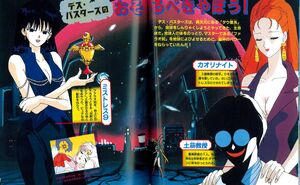 Во-первых, это рубрика «Секреты Воина разрушения Сейлор Сатурн». Про Хотару так мало пишут, что целый разворот – это настоящая радость для её фанатов. В первую очередь, в книге отмечаются различные формы девочки и некоторые её способности. О дружбе с Чиби Усой тоже сказано, цветная картинка с дизайном тоже присутствует.