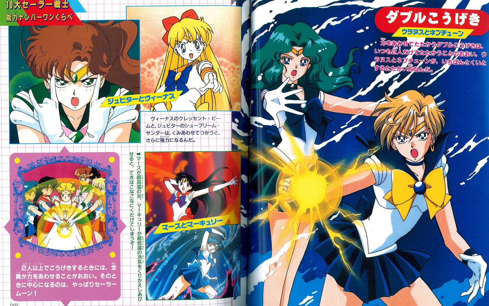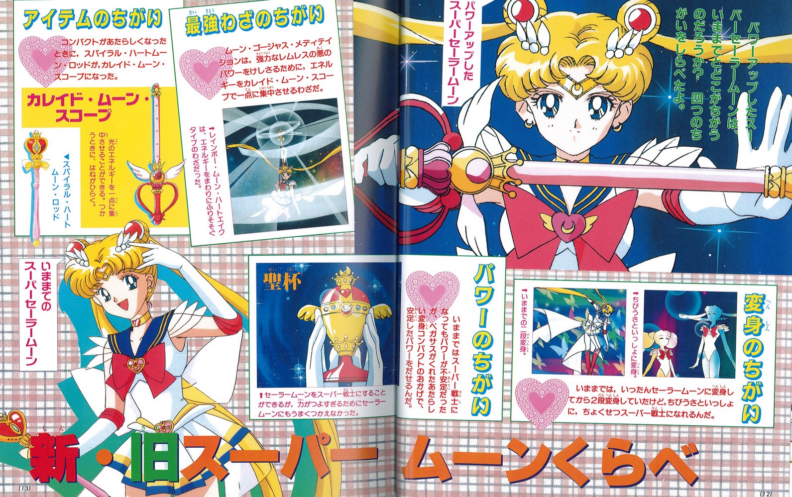Разворот со сравнением старой и новой Сейлор Мун очень интересен. Авторы пишут: «Чем отличается Супер Сейлор Мун, получившая новые силы, от той, что была раньше? Мы нашли четыре отличия». Далее идет перечисление: