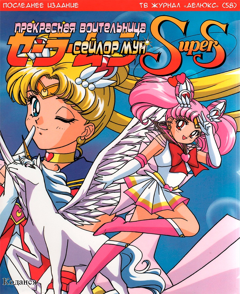 Пятьдесят восьмая книга из серии Телевизионных журналов «Делюкс» была посвящена «Сейлор Мун». На этот раз четвертому сезону. На обложке – главные герои этой сюжетной арки: Супер Сейлор Мун, Супер Сейлор Чиби Мун и Пегас. Остальные четыре Воительницы разместились сзади. Форзацы выполняют привычную функцию: первый вводит в тему, а последний сглаживает внезапно оборвавшийся конец. Действительно, книга даже не доводит сюжет до середины четвертого сезона. Тем не менее, в ней достаточно много интересных моментов.