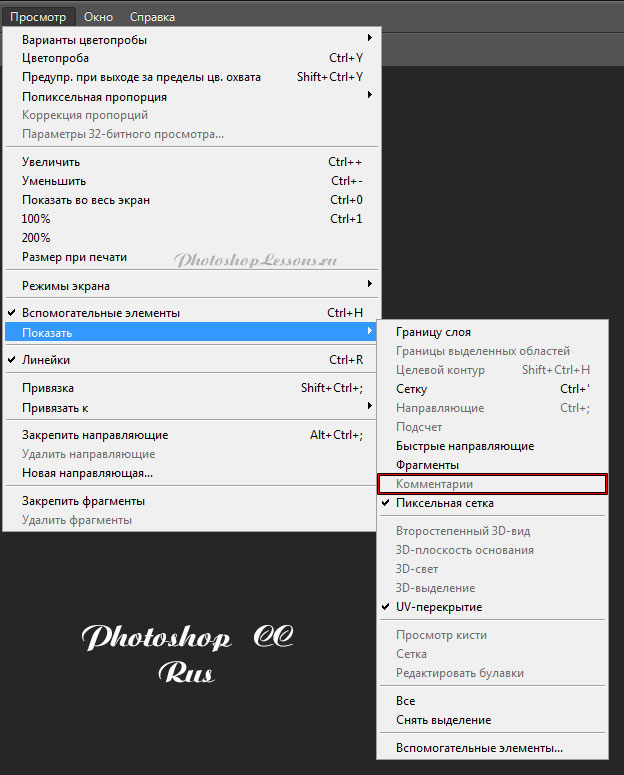 - Если не показывается панель с текстом комментария, нажми на пункт меню "Окно" (он расположен рядом с пунктом "Просмотр"). В выпавшем меню выбери "Комментарии" и тогда должно открыться окошко, в котором будет показан текст выбранного тобой комментария.